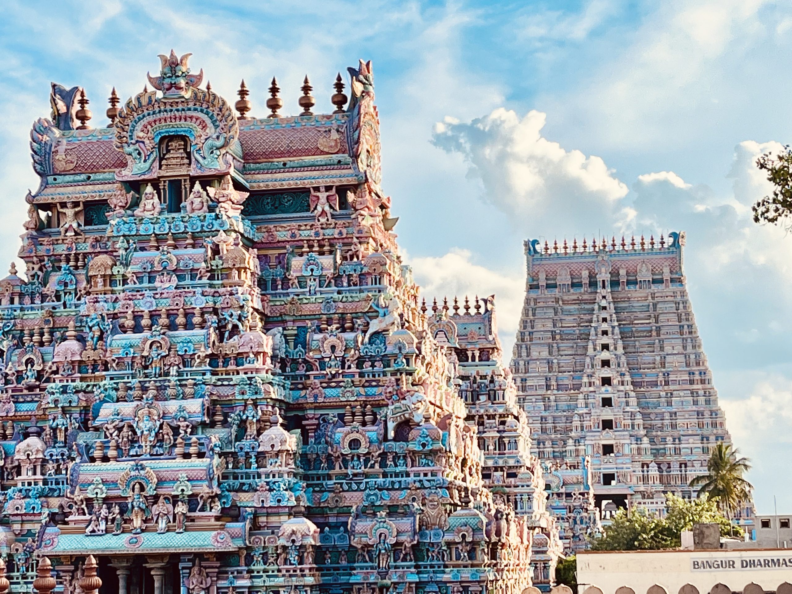 Monumentalne wieże-bramy zwane gopurami, znane z imponujących, kolorowych rzeźb, przedstawiają bóstwa i mitologiczne stworzenia.