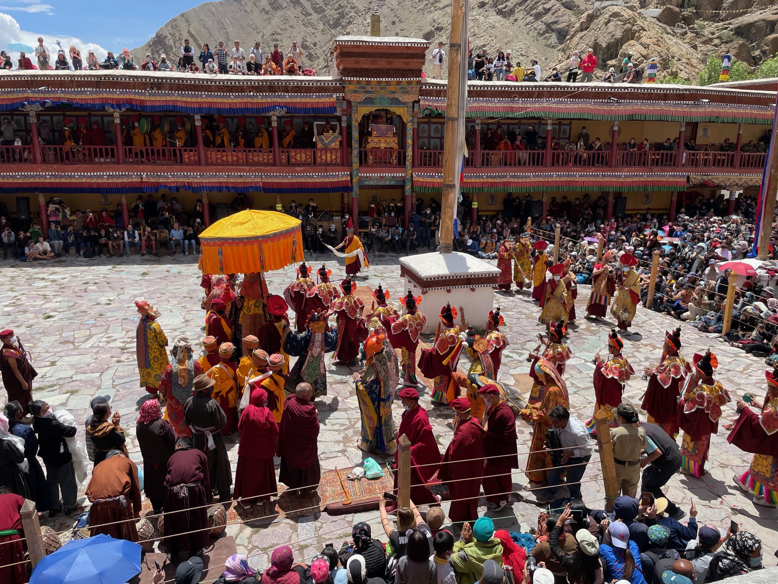 Po drodze zatrzymujemy się w klasztorze Hemis, jednym z najważniejszych i najbardziej wpływowych ośrodków buddyzmu tybetańskiego w Ladakhu. Zbudowany w XVII wieku przez króla Sengge Namgyala, ukryty jest w bocznej dolinie, z dala od głównych szlaków. Jest siedzibą szkoły drukpa kagyu, a jego zwierzchnik ma zwierzchność nad wieloma klasztorami i eremami w całym regionie – od Zanskaru po dolinę Markha.