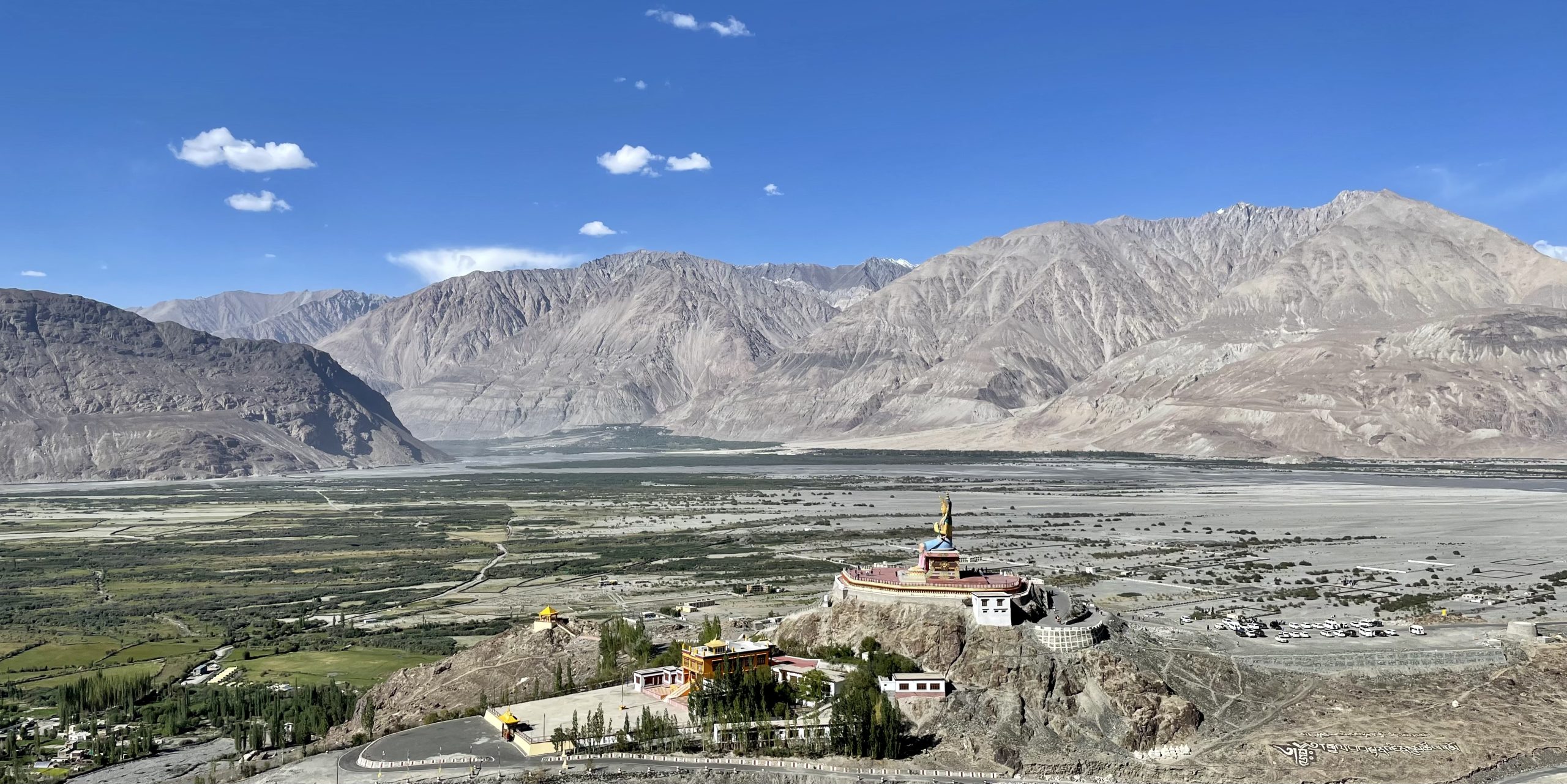 Tego dnia zapuścimy się głębiej w Dolinę Nubry, odwiedzając jej mniej uczęszczane zakątki. Zajrzymy do wioski Sumur, położonej po „lewej” stronie rzeki Shyok – spokojnej, tradycyjnej osady z zabudową typową dla regionu. W pobliżu znajduje się klasztor Samstanling, otoczony przez topole i pola jęczmienia. To aktywne centrum religijne i edukacyjne związanego ze szkołą gelugpa – mieszka tu kilkudziesięciu mnichów, a z dziedzińca klasztoru rozciąga się widok na dolinę i otaczające ją szczyty.
